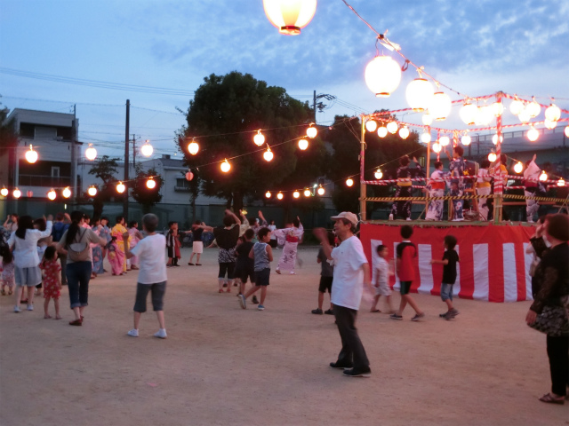 7/30(土)の夜に第9回 大宝学区盆踊り大会が大宝小学校の運動場で行われました。